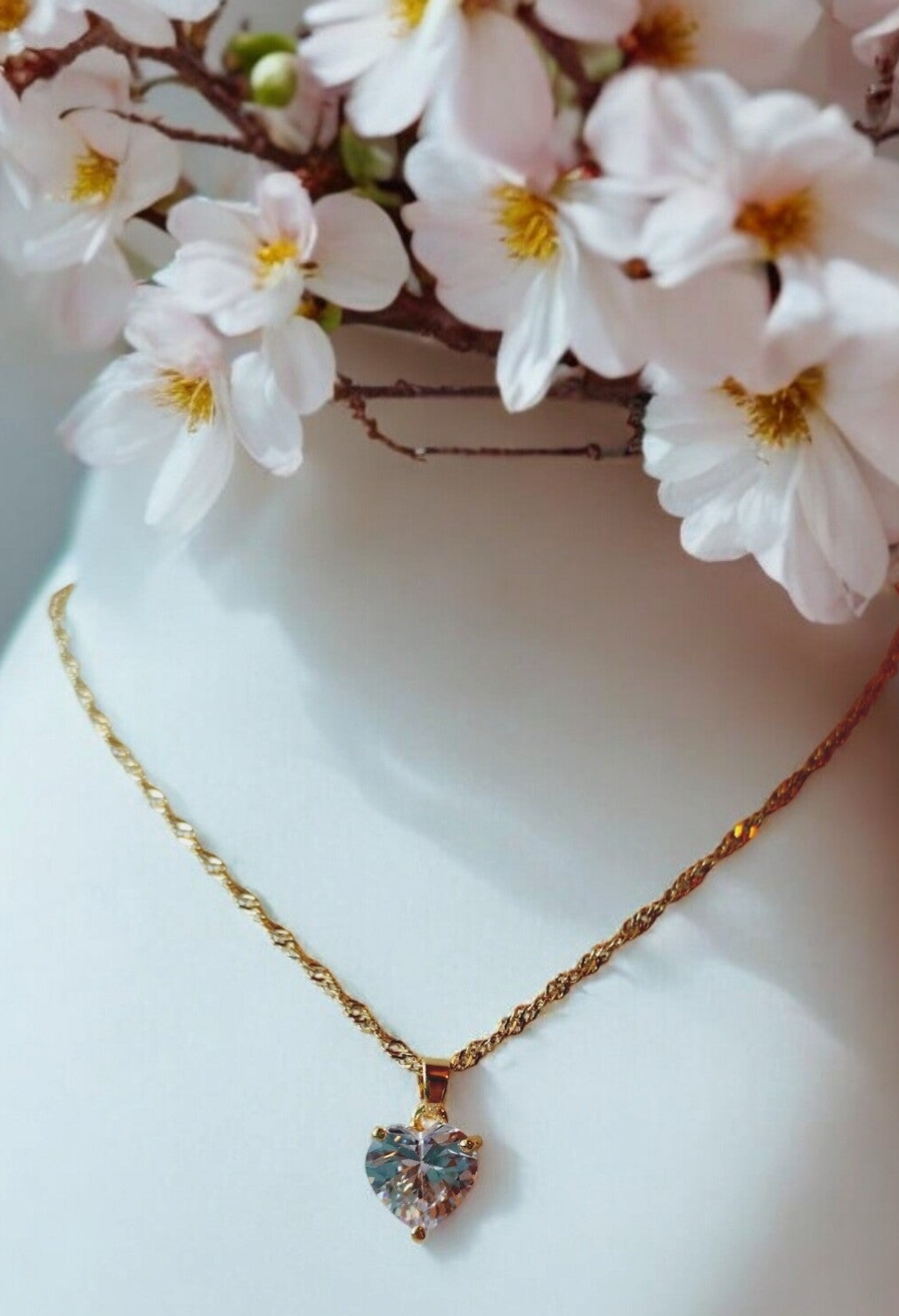 Deze ketting is gemaakt van gold plated stainless steel, met stenen hanger in de vorm van een hart.